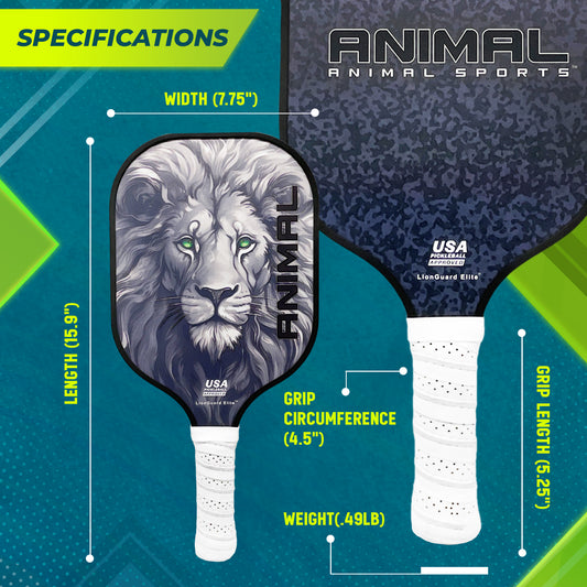 Animal Sports Pickleball Paddle, Carbon Fiber with Honeycomb Core, USAPA Approved, LionGuard Elite Paddle